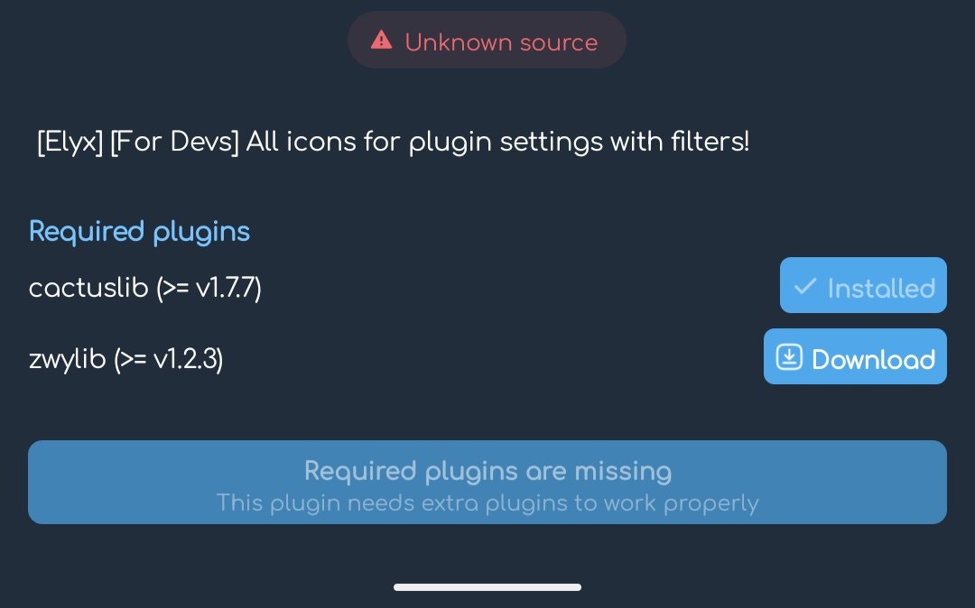requires | dict | Список необходимых плагинов. Ключ — ID плагина, значение — ссылка для скачивания. Формат ключа: "plugin_id (min_version)". | Нет |